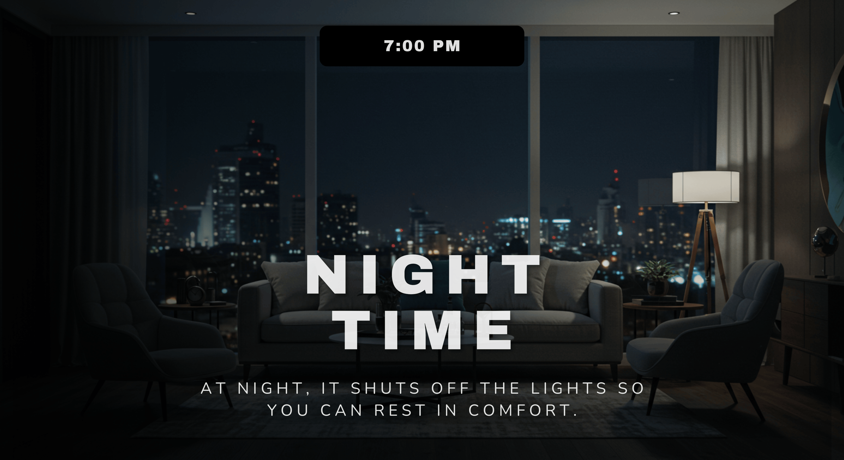 Rooms remain dark when unoccupied, eliminating wasted electricity.